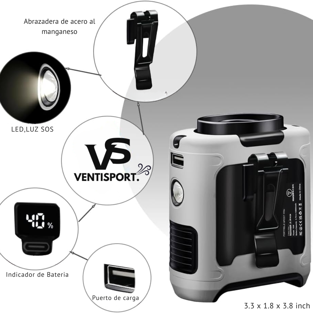 Gracias a su batería de 1000 mAh, el ventilador también funciona como power bank para cargar tu teléfono en cualquier lugar.